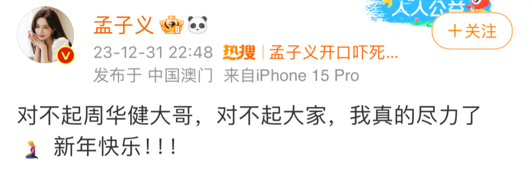 在演唱会后,孟子义就发微博向周华健及粉丝表示抱歉。
