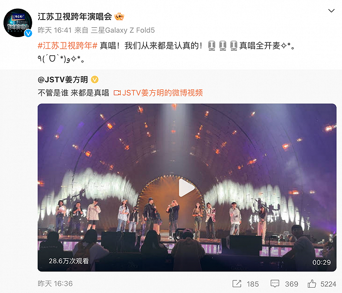 受五月天“假唱风波”事件影响,“真唱”成为今年跨年晚会卖点之一。江苏卫视此前预热时便称“真唱,我们是认真的!”同时“界定”真唱为“全开麦”。