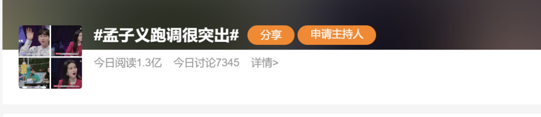 #孟子义跑调很突出#、#孟子义开口吓死我了#两个词条还冲上了热搜。