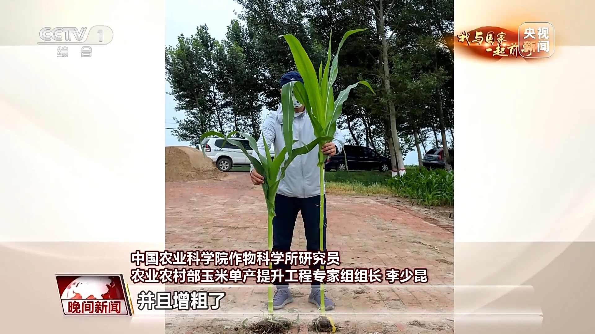 中国农业科学院作物科学所研究员、农业农村部玉米单产提升工程专家组组长 李少昆:在玉米将要拔节的时候,喷洒玉米生长调节剂,它就缩短了不伸长了,原来可能一节20厘米,现在可能就10厘米,并且增粗了,所以玉米抗倒伏能力增强了。
