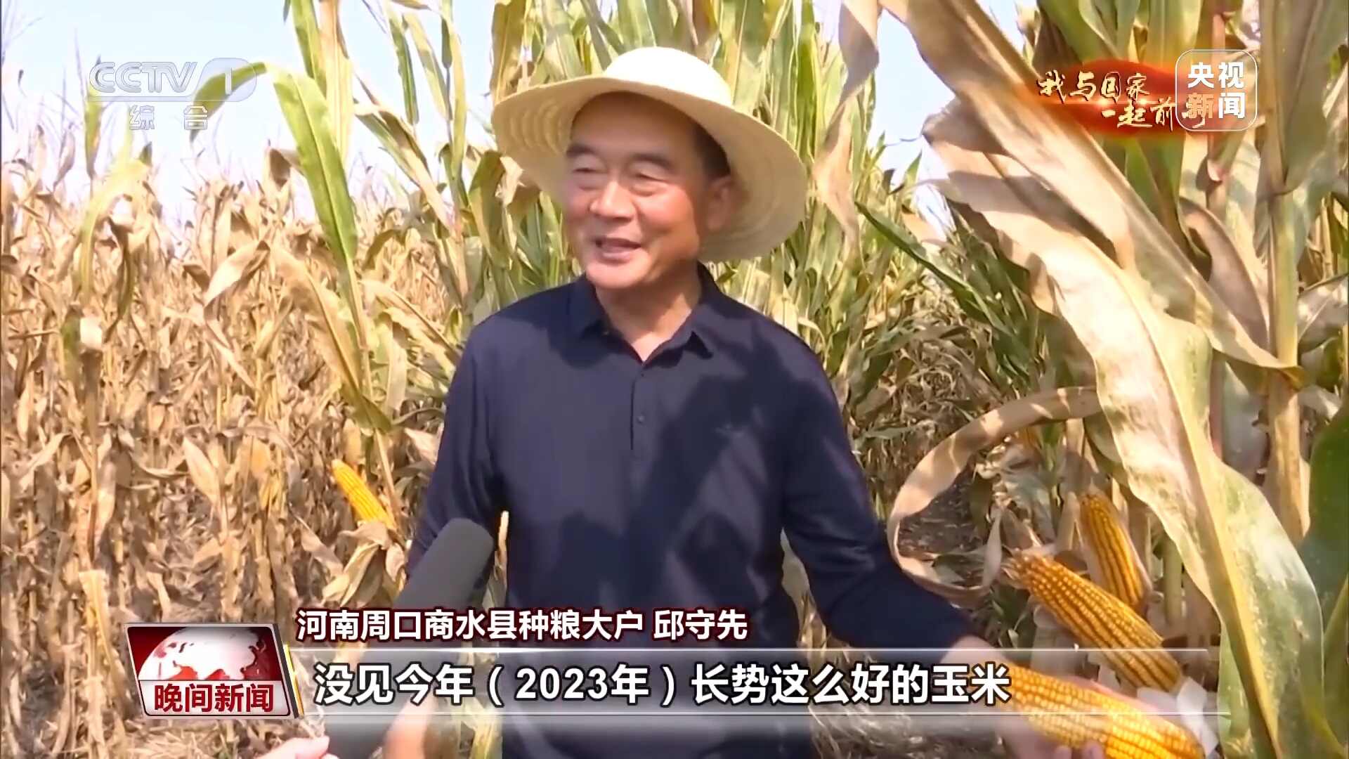 河南周口商水县种粮大户 邱守先:种了几十年地,没见今年(2023年)长势这么好的玉米。最主要的我们2023年收获了一份这一项技术、这一项管理方案。
