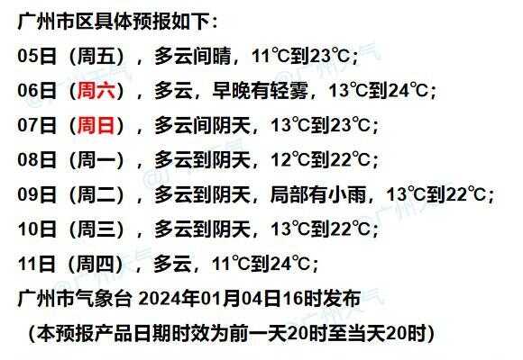 6日-7日,韶关、清远、肇庆北部、河源北部市县多云到阴天,有小雨局部中雨,粤西市县多云间阴天,局部有零星小雨,其余市县以多云天气为主。早晨最低气温:粤北和珠江三北部市县9℃~12℃,南部沿海市县15℃~19℃,其余市县12℃~14℃。