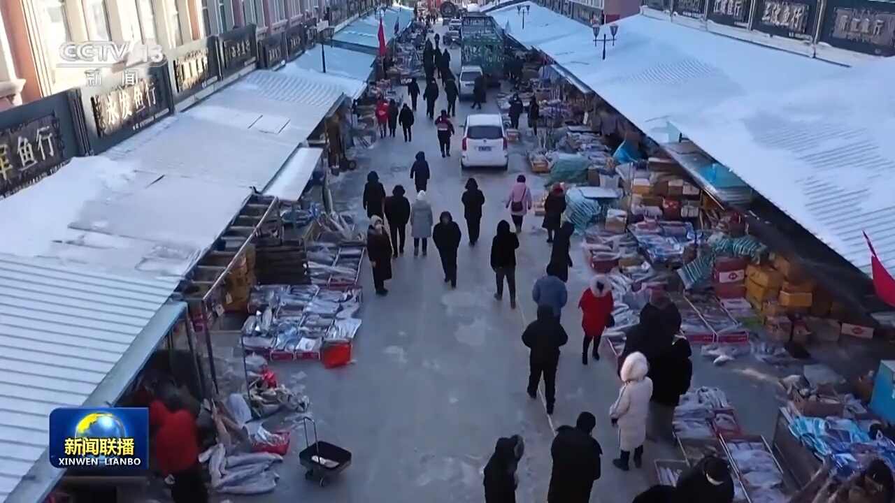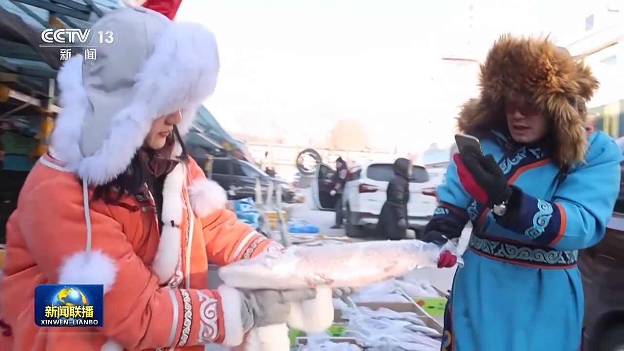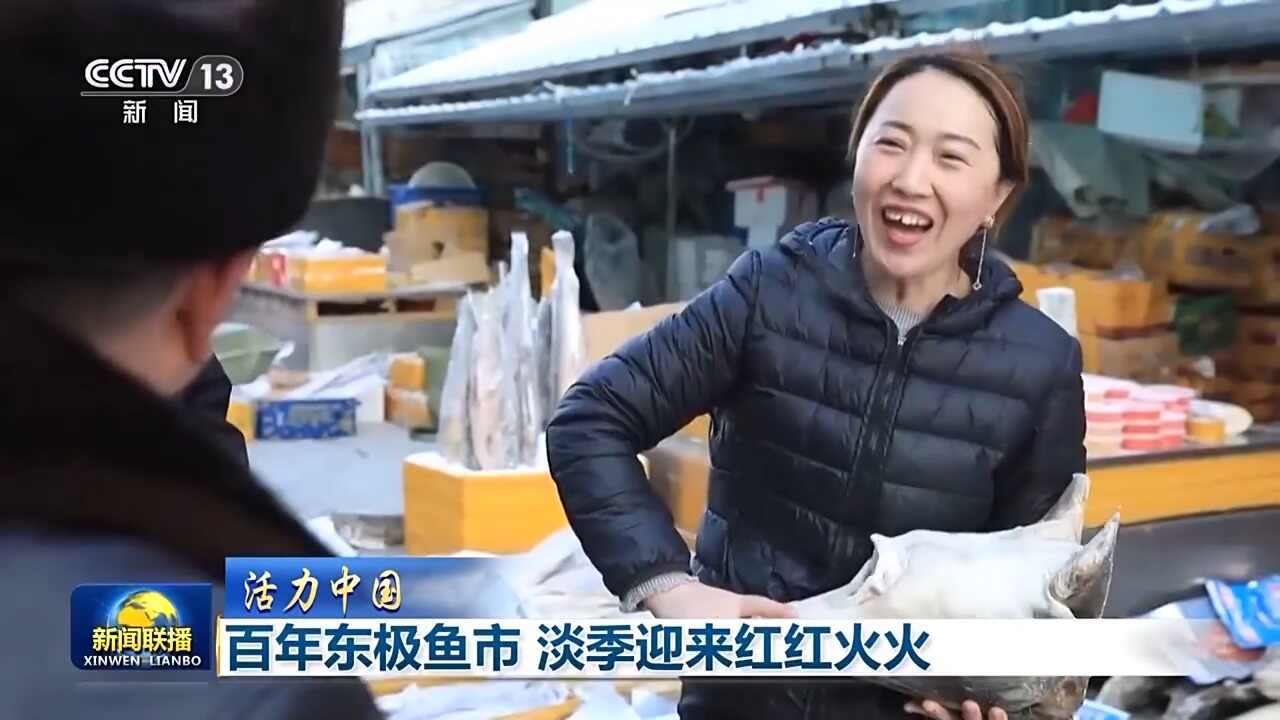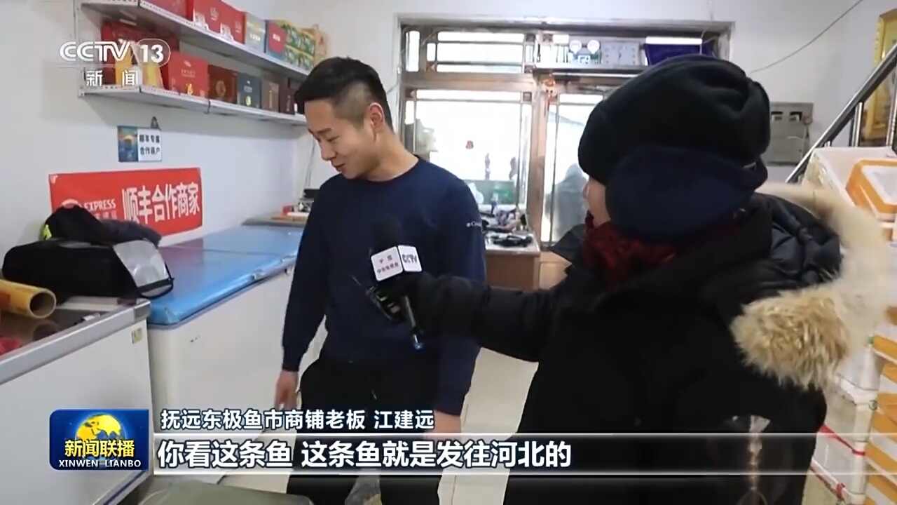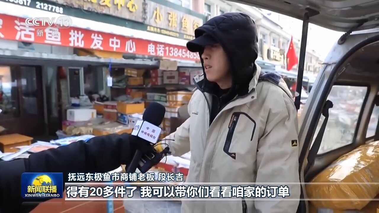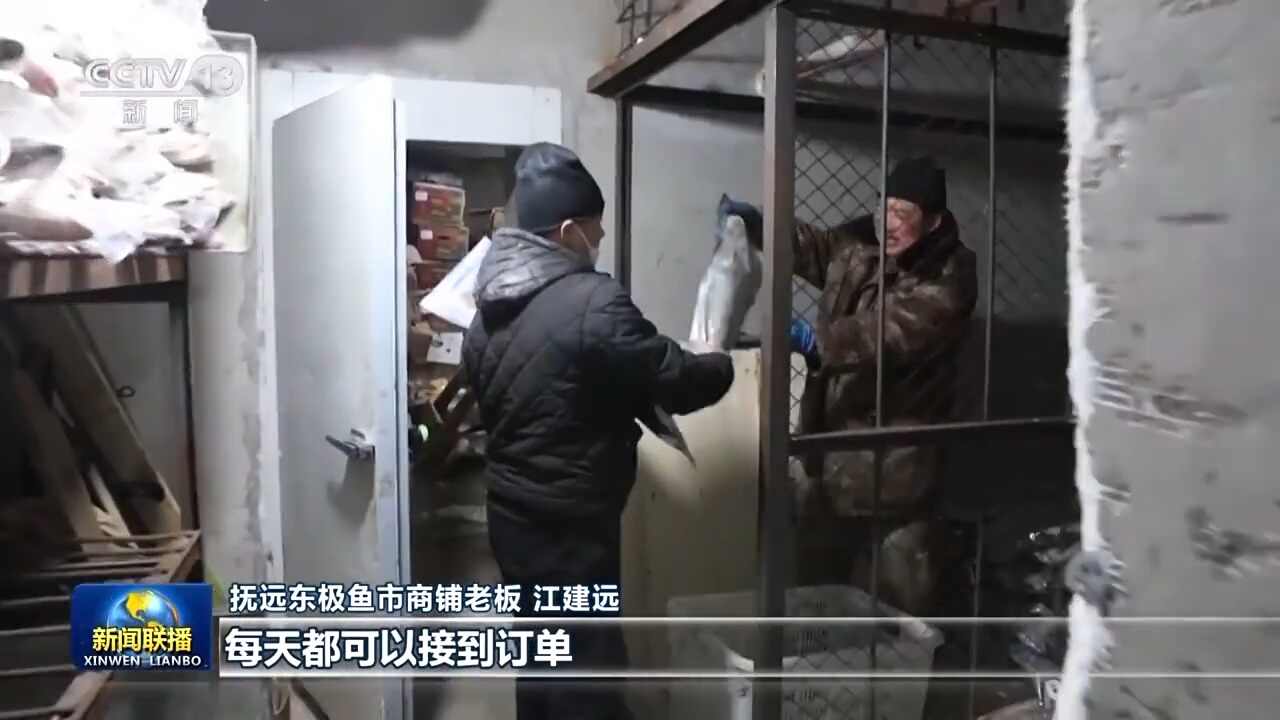 抚远东极鱼市商铺老板 江建远:之前咱们传统的经营模式的时候,冬天在这个时候我们就已经休息不忙了,现在通过直播,每天都可以接到订单,一直可以忙到年前,让我们鱼市的所有人都会多赚钱。