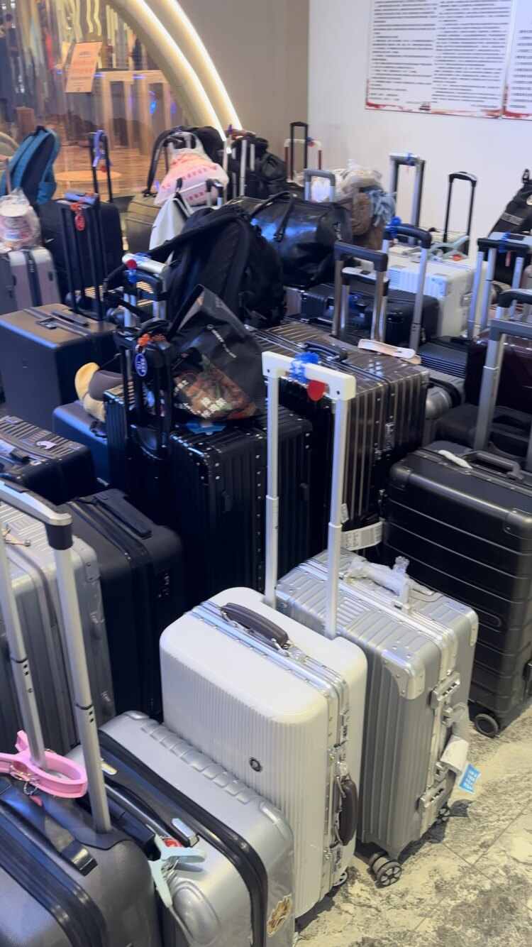 1月7日上午,记者在一家位于哈尔滨道里区商圈附近的洗浴中心看到,一楼大堂设置的行李寄存处,数排五颜六色的行李箱整齐排列。据悉,不少游客一下飞机、高铁,就拖着行李箱直奔洗浴中心。