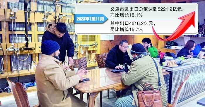寻常的一天,不寻常的一年。刚刚过去的2023年,尽管外贸形势严峻,但被誉为“世界超市”的义乌,勾画出了一条“活力曲线”。数据显示,2023年1至11月,义乌市进出口总值首次突破5000亿元大关,达到5221.2亿元,同比增长18.1%;其中出口4616.2亿元,同比增长15.7%。