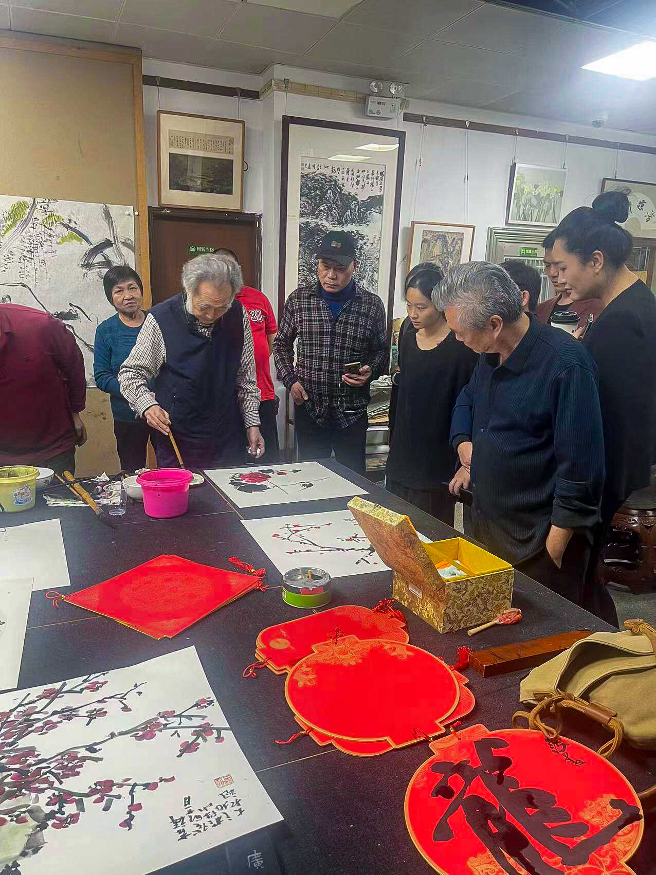 伴随着悠悠古琴声,淡淡茶香飘起,众人雅兴皆至,铺开笔墨纸砚,乘兴创作,各展所长,凭书画为媒,用笔墨言情,以丹青贺新貌,共庆“春睡百年”。