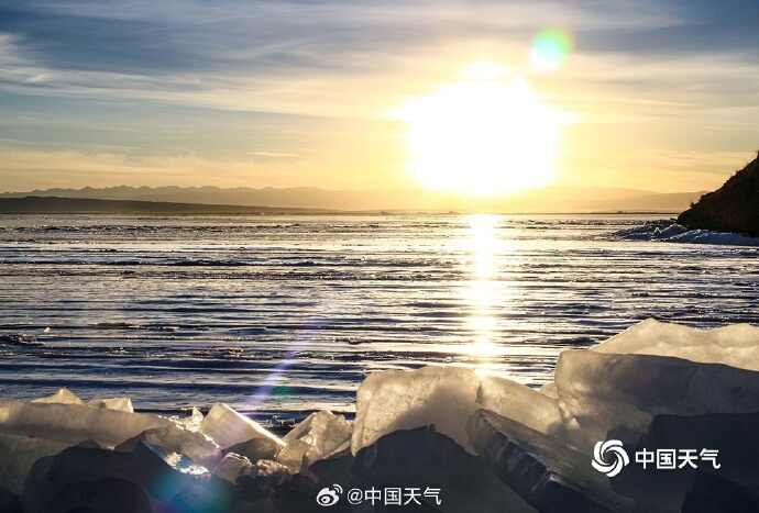 新年伊始正值寒冬,青海湖迎来一年一度的冰封时节。位于青海湖北岸的断崖景区,因近期气温较高,湖心还没有完全封冻,湖面倒映着天空的湛蓝,浑然一色,冰冻的湖面呈现奇幻的肌理效果,湖边被风吹起堆叠的冰块晶莹剔透,夕阳西下时,湖面在落日的映衬下美如画卷,蔚为壮观。