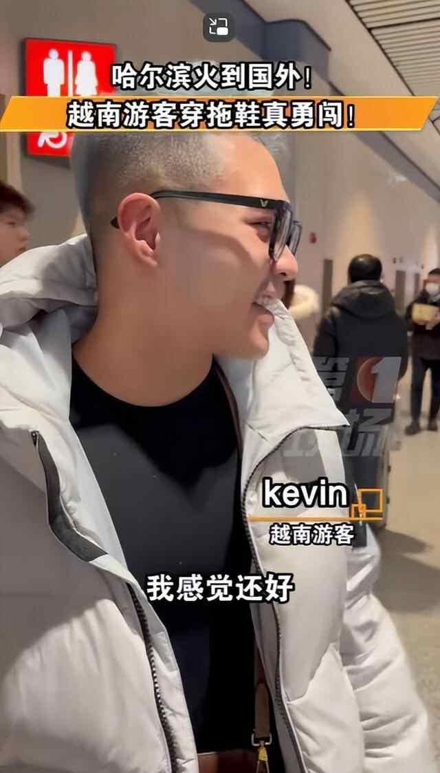 比如,国内一电视台记者采访机场偶遇一位越南游客,询问得知,该男子来自越南。对于零下二三十度的哈尔滨,这位穿着拖鞋的越南国际友人表示“感觉还好!”