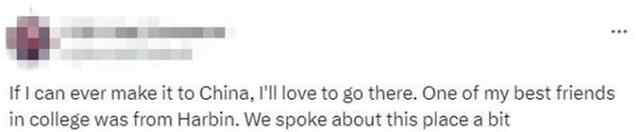 不少外国网友也在社交平台评论称“想去中国,想去哈尔滨”。有网友表示,“如果我能去中国,我很想去那里。我大学时最好的一个朋友就是来自哈尔滨。我们聊过这个地方。”