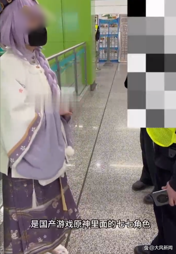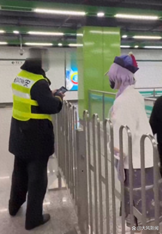 “请问我为什么不可以进地铁站?”网传视频显示,地铁站进站口外,一名女孩身着动漫服饰,戴着帽子,头发染成紫色,被拦后和地铁安检员“唇枪舌战”。