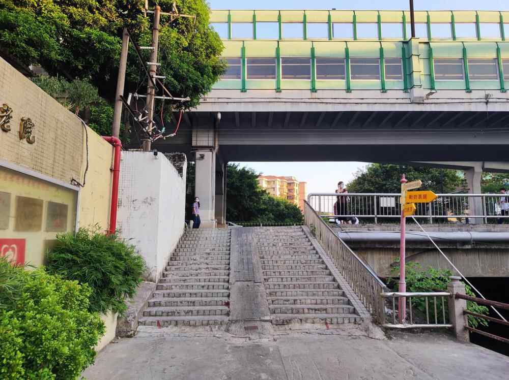 为切实做好打通二龙片区内街巷安全通道工作,龙凤街结合片区实际情况,将涌边路口原本只有一段仅供行人和非机动车通行的阶梯,改为可供车辆通行斜坡,并在斜坡旁边单独建造了阶梯,设置了人行专用道,实现人车分流,将原有的高压电线迁移,切实保障了行人出行安全。