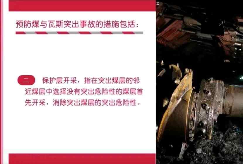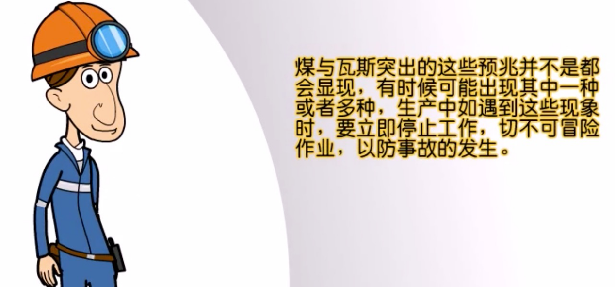 1.响煤炮。突出在煤体深处发出大小、间隔不同的响声。有的像炒豆声、有的像鞭炮声、有的像机枪连射声、有的像闷雷声。特别是煤炮声由小到大,由远到近,由稀到密是突出较危险的信号。