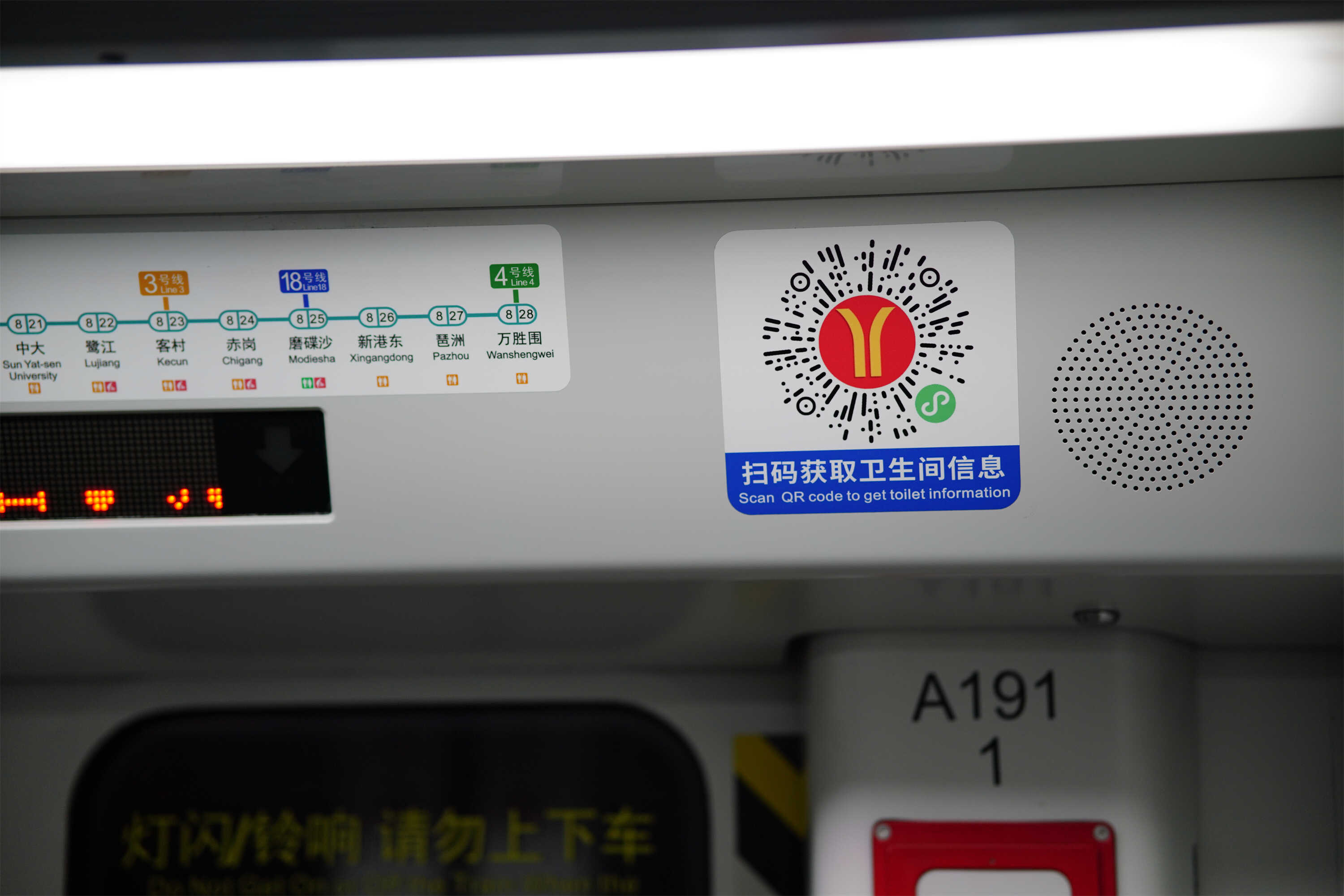 近日,广州地铁车站和列车上多了一个“扫码获取卫生间信息”标识,据悉,为了向广大乘客提供更加清晰的“如厕指引”,广州地铁对线网各车站进行了信息摸查和统计,制作成扫码标识,在全线网推出。