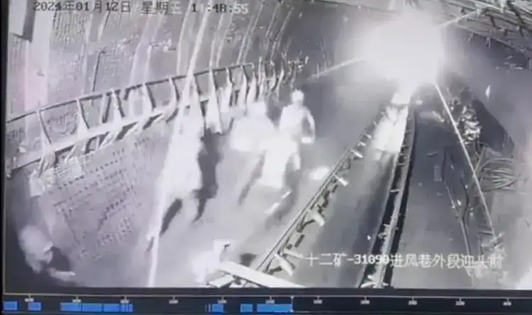 15日,一份事故发生时的监控在网络曝光。监控显示,事发时,在该公司十二矿进风巷外段,几名工人原本正在正常作业,疑似听到声响开始往外跑,紧接有更多工人向外逃跑,紧接着监控显示地点疑发生爆炸,画面瞬间消失,变成黑屏。