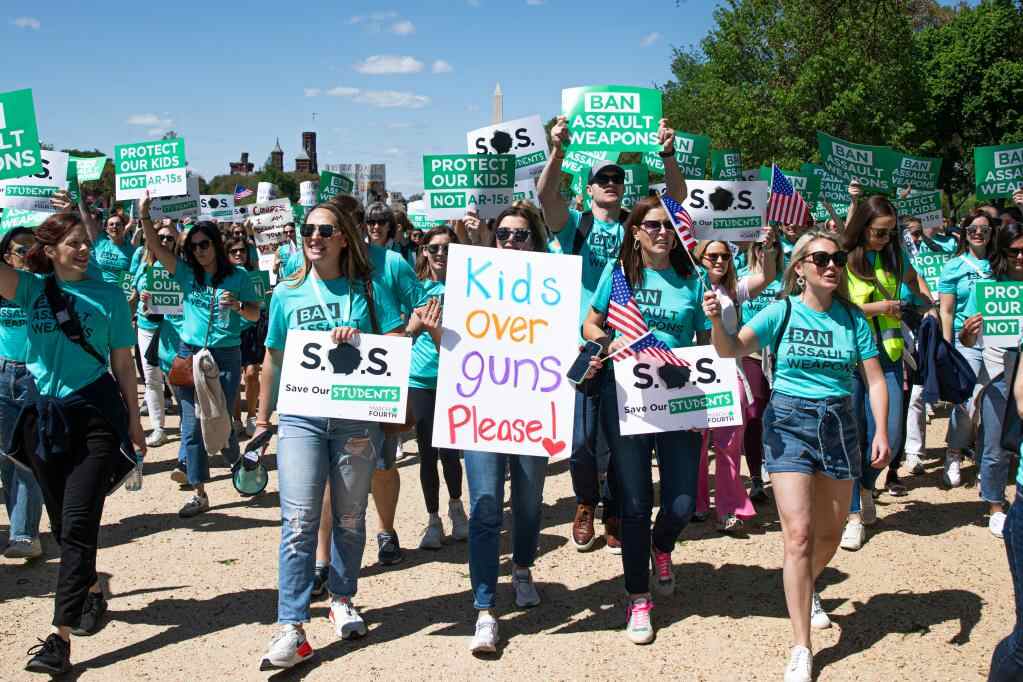 2023年4月,人们在美国首都华盛顿参加控枪游行,呼吁禁止销售攻击性武器,应对美国枪支暴力问题。(图源:新华社)