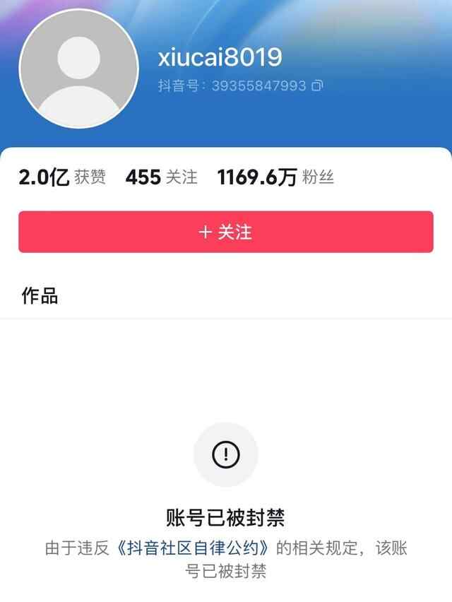目前,“秀才”账号仍为被封禁状态,粉丝数已从去年的超1200万下跌至1169.6万。