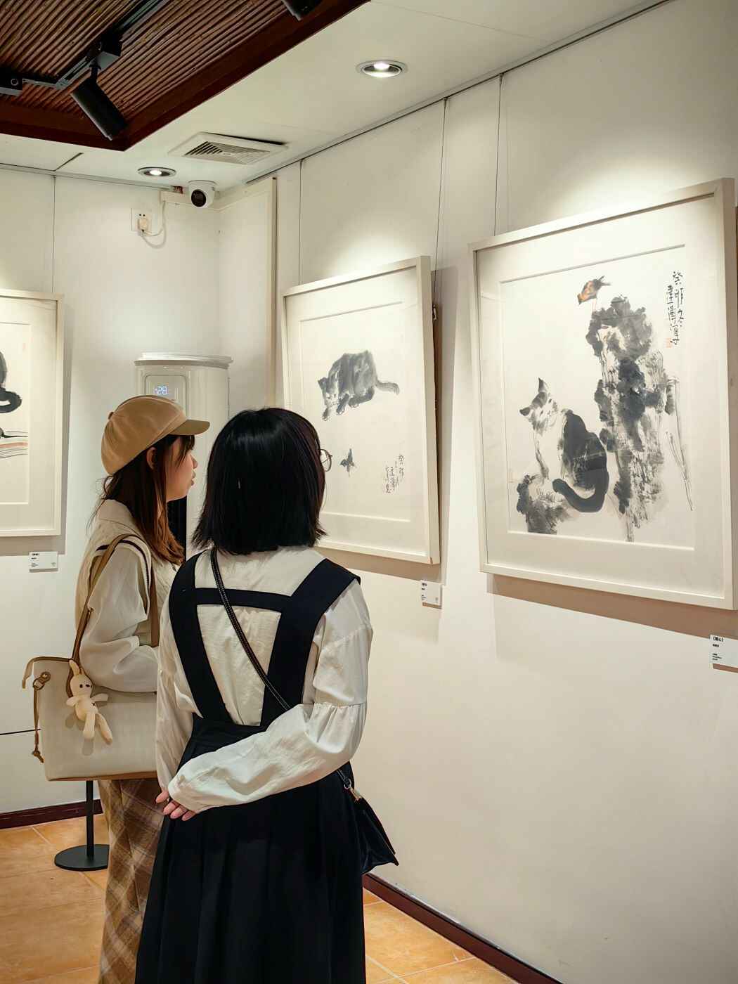 国香馆的“兰香猫趣”水墨画展集中展出了吴丽娥、郭莽园、苏小华等艺术家创作的猫主题画,画作将兰花优雅多姿的风情与猫咪慵懒可爱、轻盈灵动的情态巧妙结合,笔墨酣畅、形神兼备,充满情趣。步移景换,转角“偶遇”路亭,在此开设的“喵趣横生”摄影展则定格了广州兰圃猫咪萌态灵动的精彩瞬间。