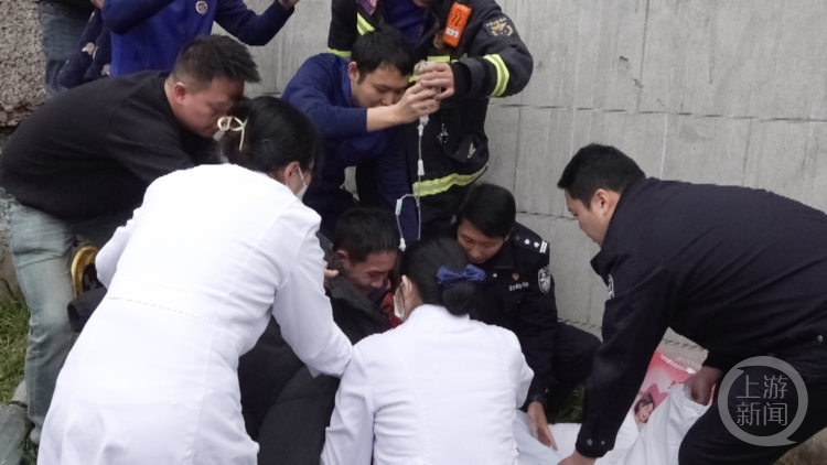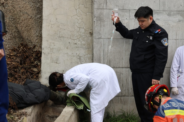 “孩子,听得到吗。不怕,警察叔叔来了!”他们一边呼喊赶紧脱下外套,将孩子双腿裹住,并呼叫支援。