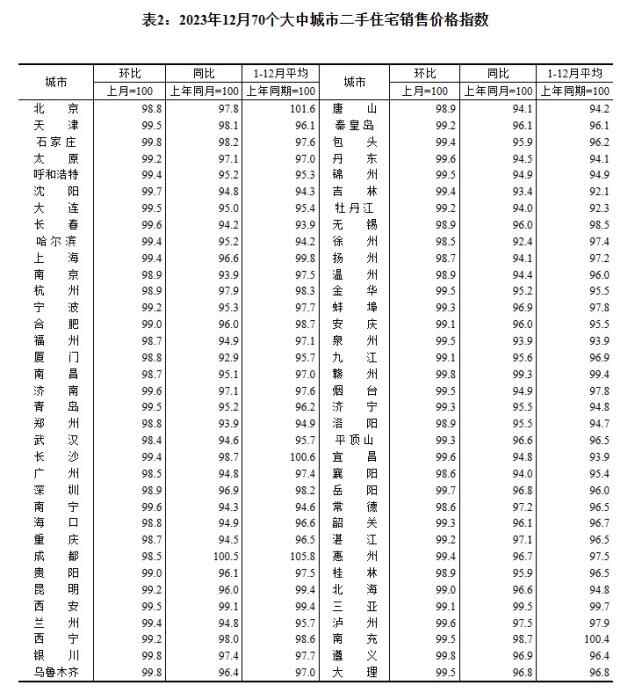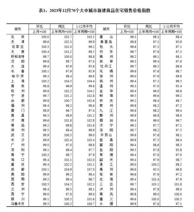 1月17日,国家统计局发布2023年12月份商品住宅销售价格变动情况统计数据。这份2023年房价的收官数据显示,70个大中城市中,各线城市商品住宅销售价格环比下降、同比有涨有降。