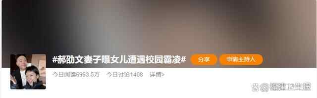 半个月前,#郝劭文妻子曝女儿遭遇校园霸凌#话题冲上热搜,郝劭文也发布视频称:“此事的发生不是一天两天。”随后,当地官方通报称教育公安等部门已开展调查。