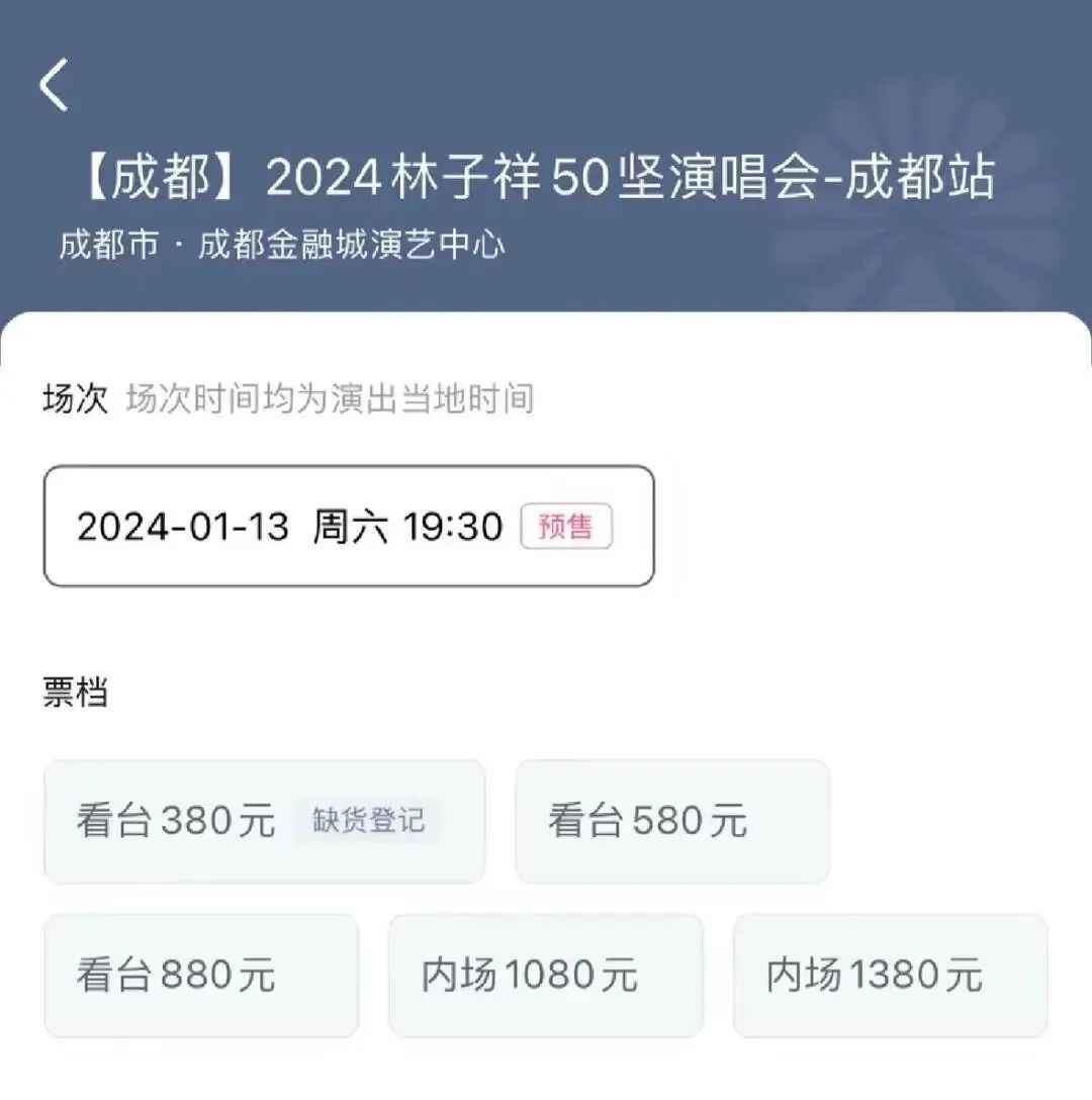 据了解,在当天购票平台首页,专门设置了带有林俊杰头像的购票入口,点击该窗口即可直达购票页面。但是,在该窗口的右上角,还有一行小字为“林子祥成都”。这也是平台方和部分网友质疑购票者不慎点错的重要依据之一。