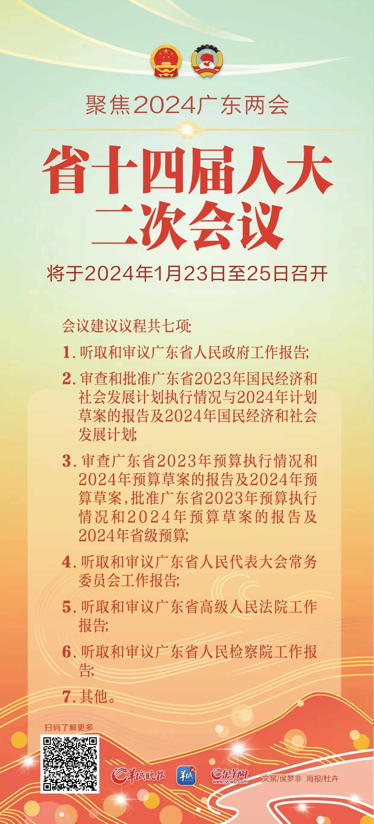 2024年广东两会即将拉开帷幕。1月19日上午,省十四届人大二次会议新闻发布会在广州举行。记者从新闻发布会上获悉,省十四届人大二次会议将于2024年1月23日至25日举行。
