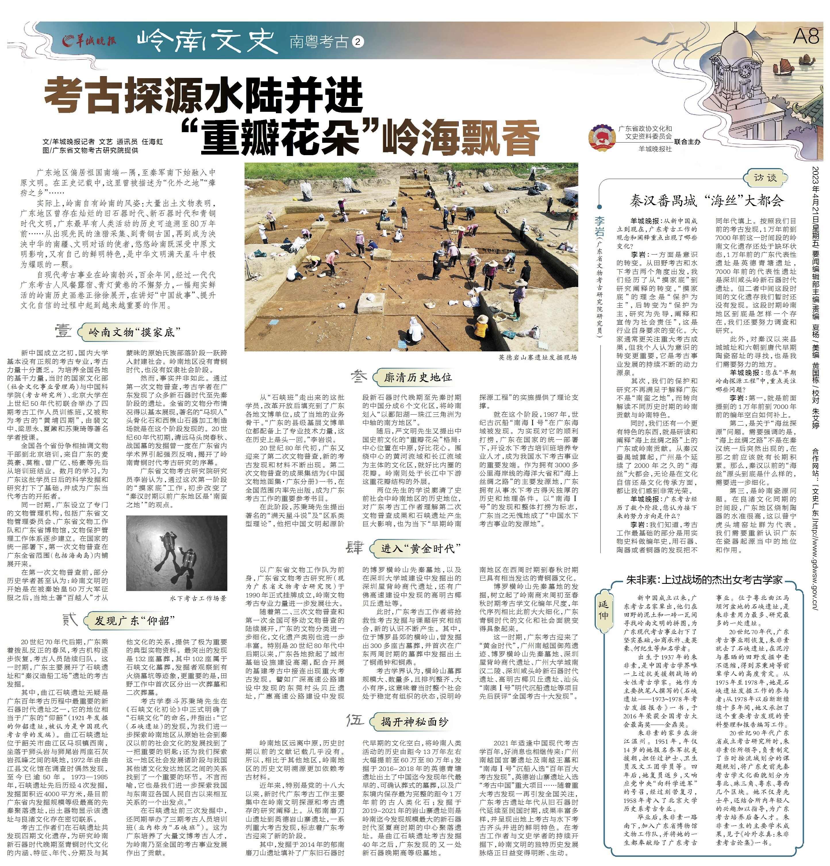 如将关于龙舟、咏春等岭南非遗的探源描述,与最新的学术成果和传承人动态相结合,并放入粤港澳大湾区视野中去梳理和剖析。挖掘整理苏东坡流寓岭南人文遗产的《斯地景胜文明启,东坡先生在雷州》,从前人少有的角度度量和串联珍贵史迹,兼及当代发展;《广州,中国近现代田野考古策源地》《考古探源水陆并进 “重瓣花朵”岭海飘香》等报道,从广州一地到岭南一脉,梳理现代岭南考古独特面貌。