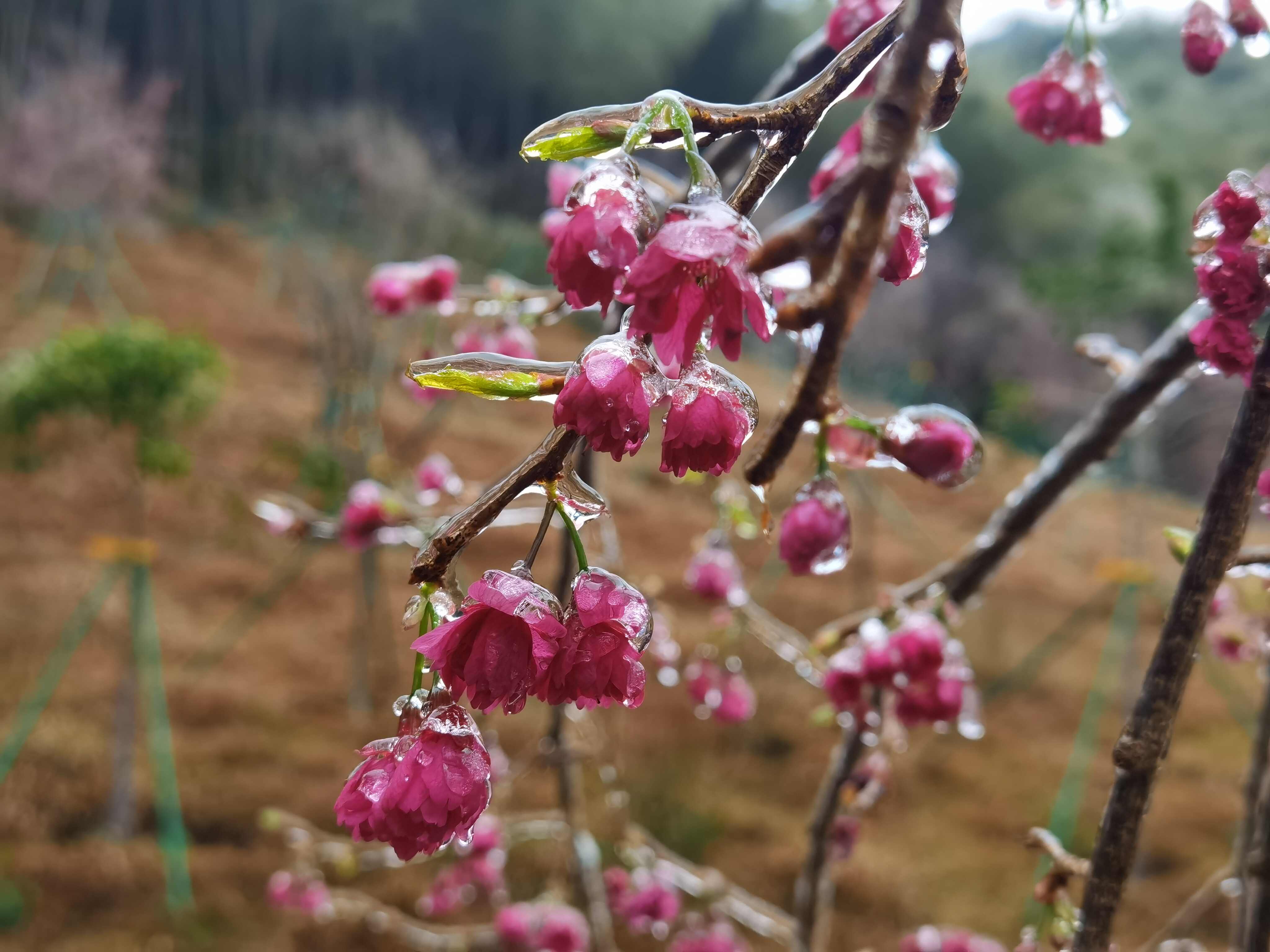 广州石门国家森林公园的冰挂,宛若镶嵌在树枝上的宝石,晶莹剔透;