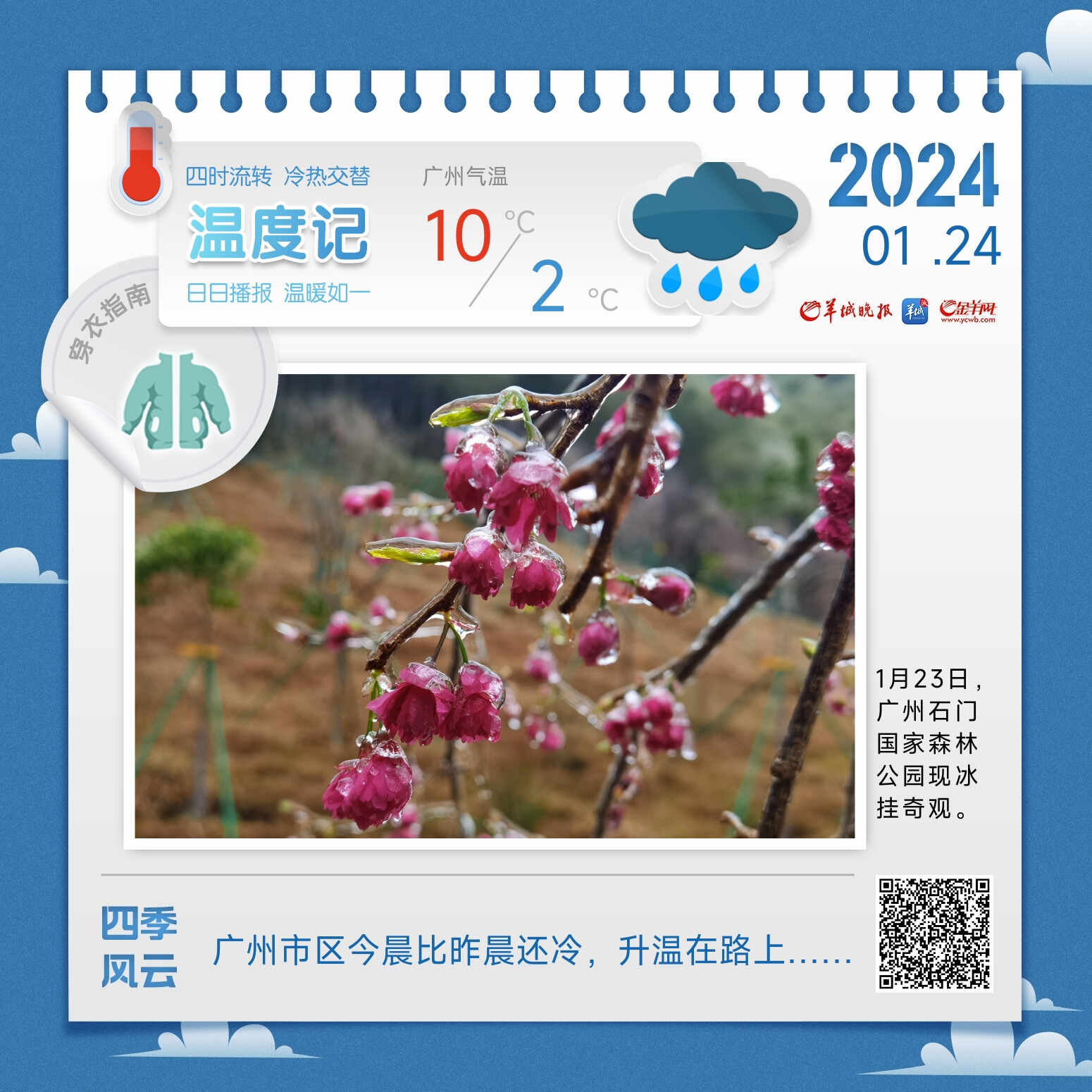 具体而言,今日(24日),除西部地区仍有阴雨外,广东大部转阴天到多云,天气依然非常寒冷,有5℃以下低温。其中,粤北及中南部山区早晨最低气温将比昨天还低,大范围在0℃以下,仍有冰冻。