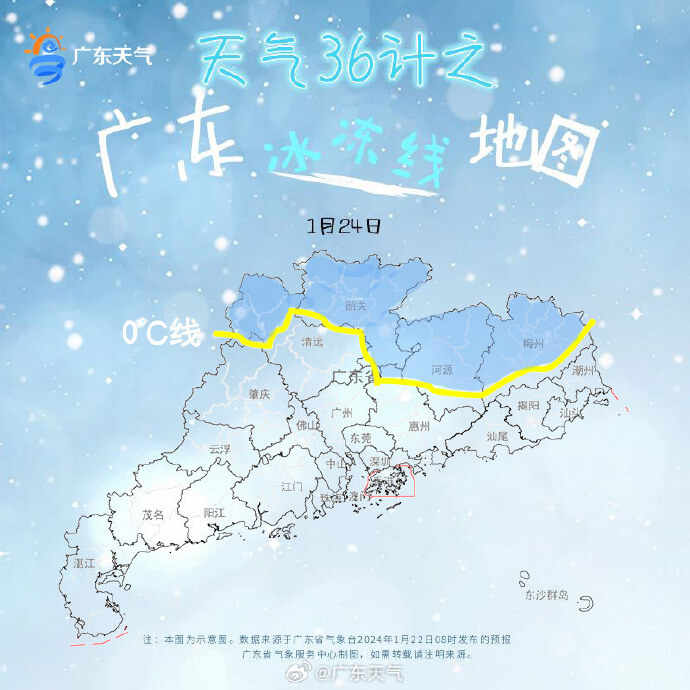 看看今日的广东冰冻线地图,你家在0℃线的哪边?