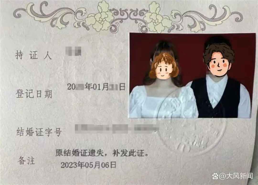 马诺及其丈夫的结婚证 (图片来源:大风新闻)