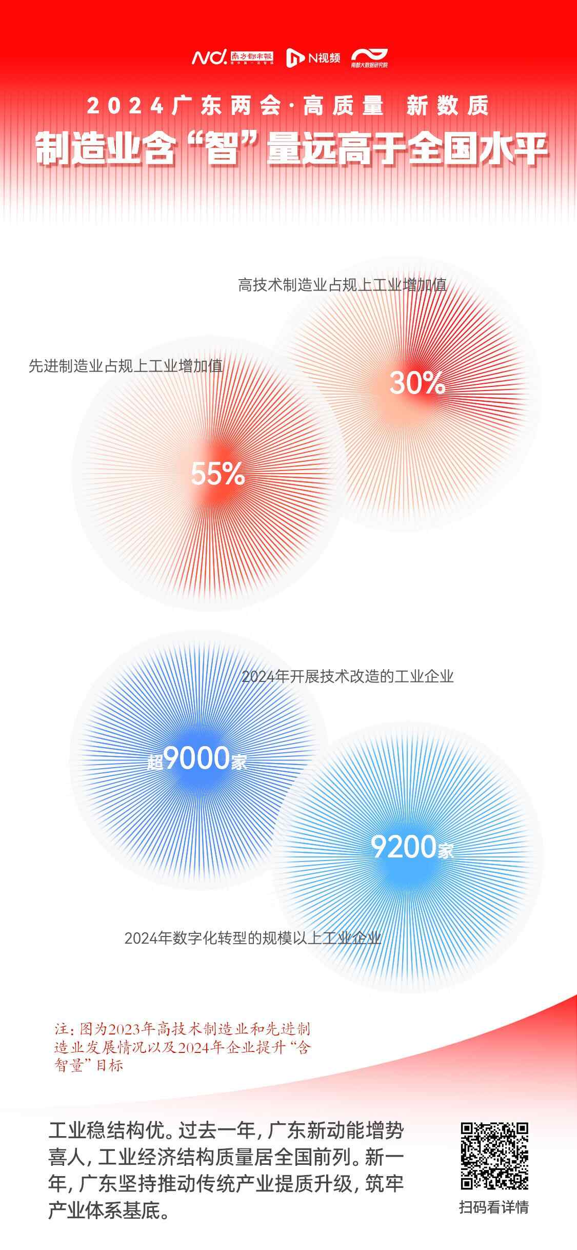 据悉,广东将继续深化传统产业提质升级、推动人工智能深度赋能新型工业化,力争2024年推动超过9000家工业企业开展技术改造、9200家规模以上工业企业数字化转型。