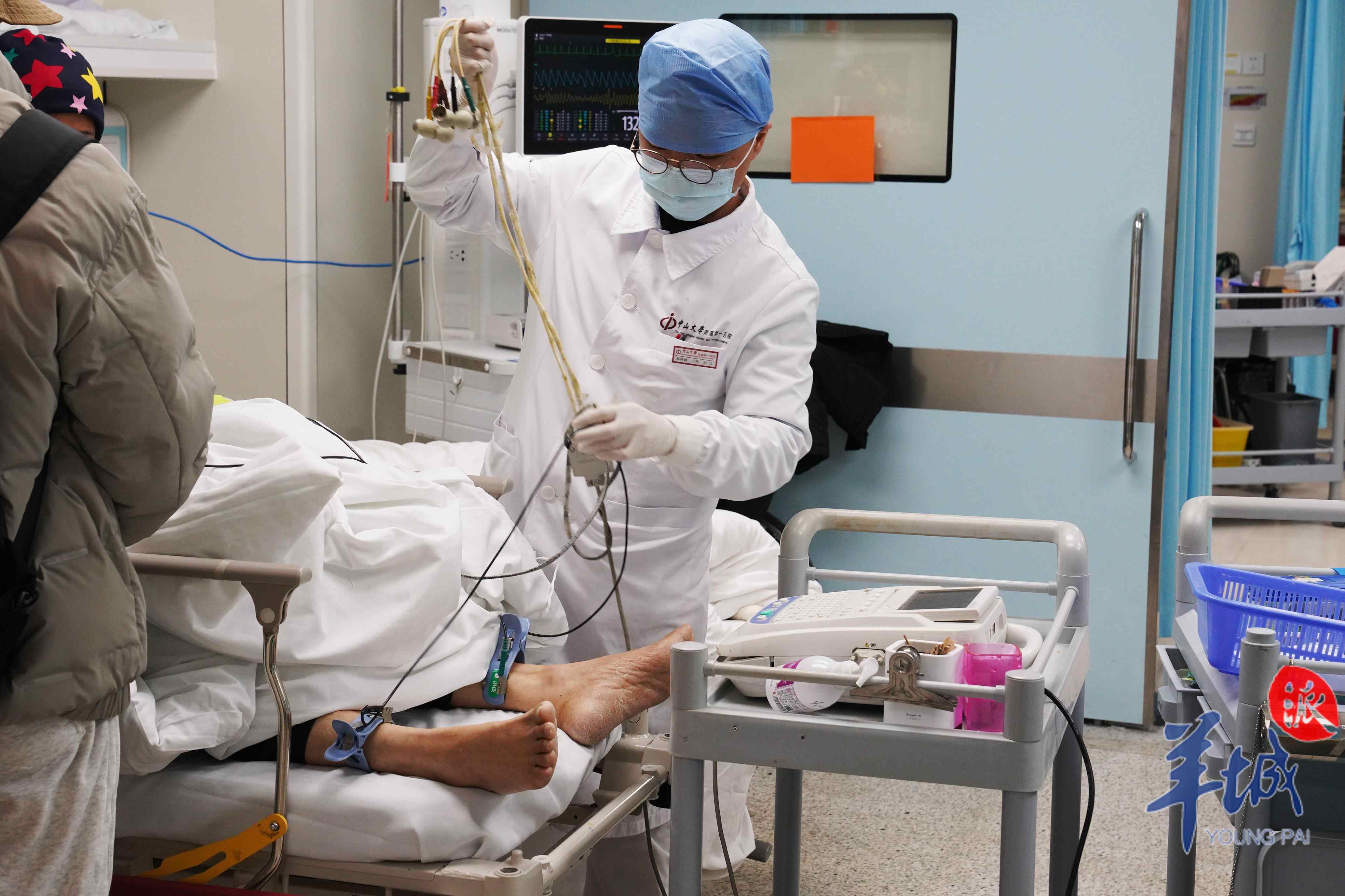 冷!1月24日广州录得最低气温-4.3℃!虽然室外天寒地冻,室内却热火朝天,羊城晚报记者夜探急诊科,感受到的是“温暖如春”。