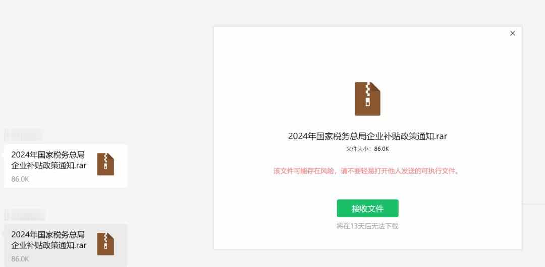 带有木马病毒的文件压缩包常见的名称包括:“税务补贴服务端.exe”“参考图.zip”“公司资料.rar”等;尤其需要注意压缩包内伪装成文件的程序。