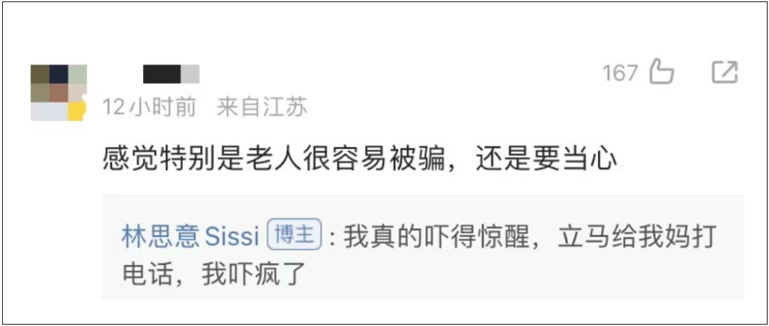 在评论区里,林思意回复网友:“我真的吓得惊醒,立马给我妈打电话,我吓疯了。”
