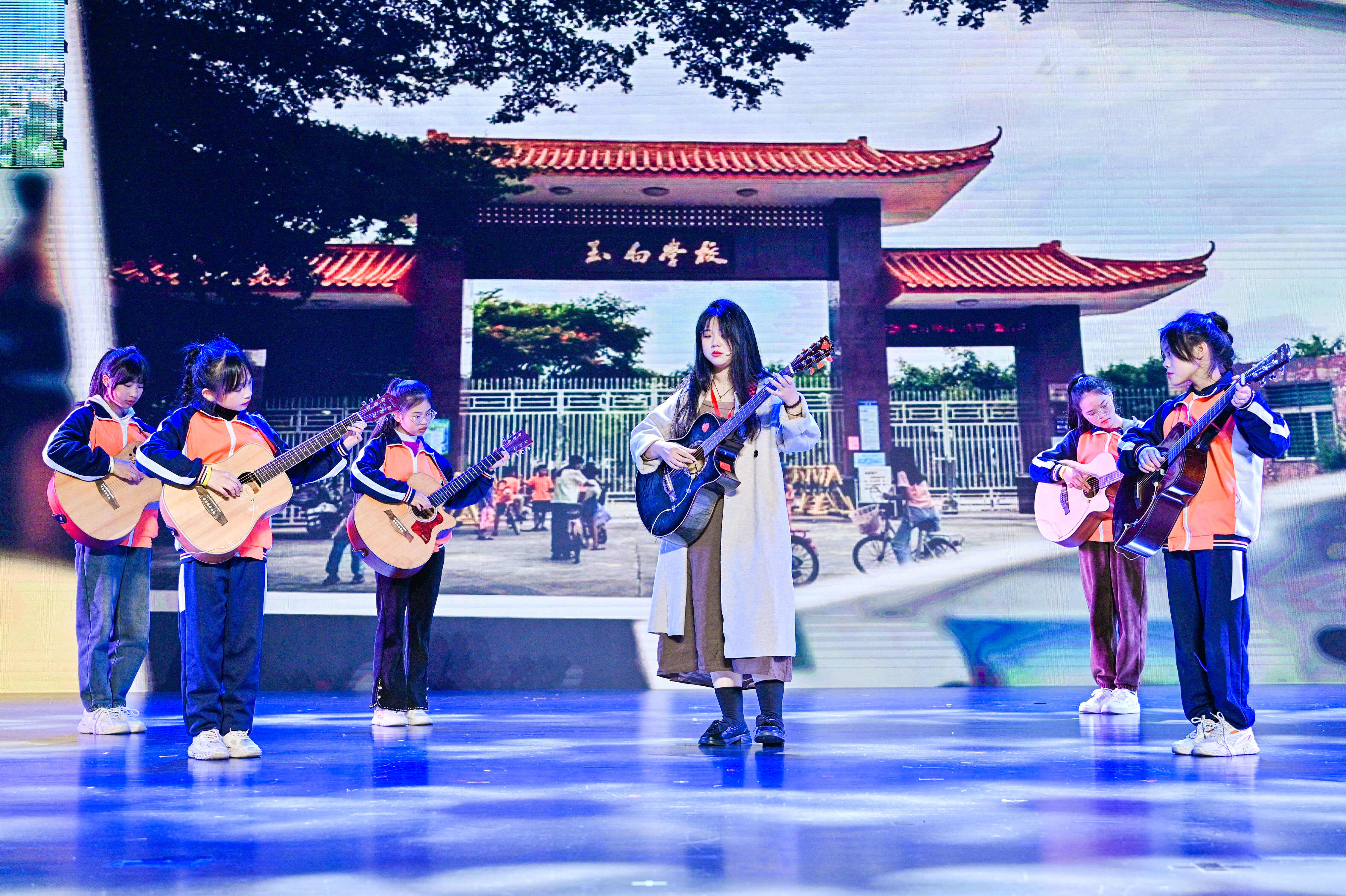 现场,揭阳揭东玉白小学吉他社团的孩子们在乡村支教老师林育璇的带领下合奏《同桌的你》,向观众展示他们一学年来的乡村美育课堂成果。“很激动很奇妙!以前只能在电视上看到的广州塔,现在就在眼前!”卢同学害羞地表示这是他第一次走出乡村来到大城市,更惊喜的是站上如此大的舞台表演。该吉他社团是“广东福彩乡村美育计划”在粤东粤西粤北地区乡村学校打造的美育社团之一。近年来,“广东福彩乡村美育计划”通过组织优秀社会教育教师送教下乡、开展流动少年宫等形式,帮助乡村青少年提升美育素养,惠及近1500名少年儿童。