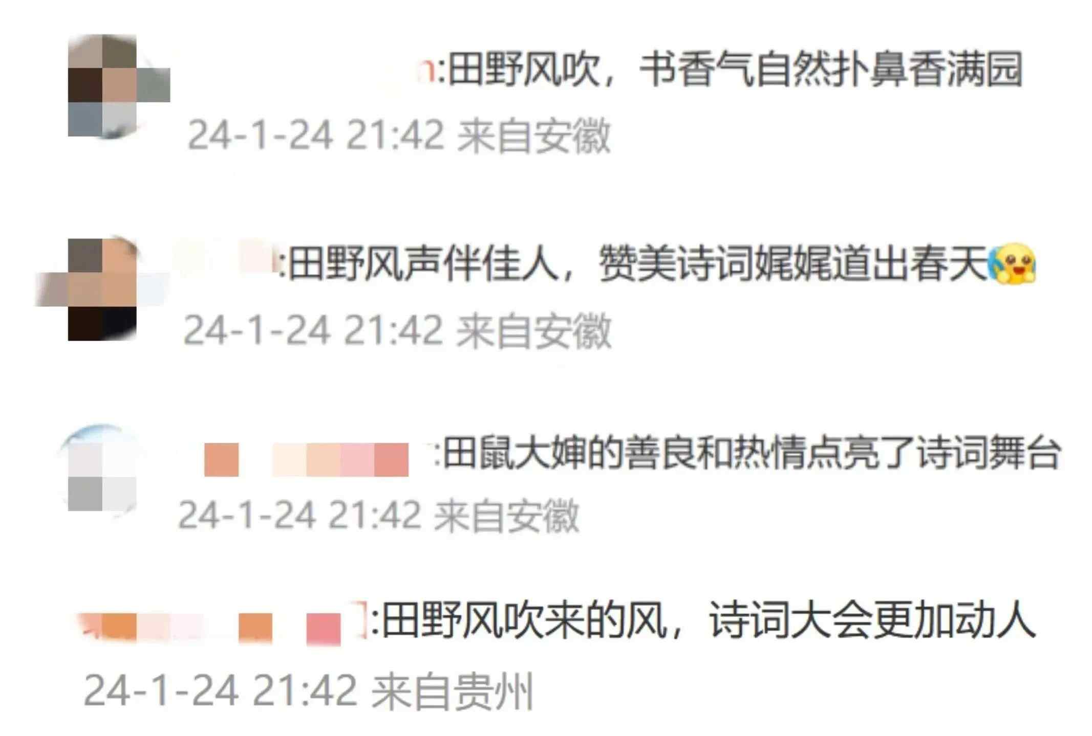 对诗词大会的期待被拉满了。每届诗词大会都会邀请来自各行各业的普通人参与答题,这次“田鼠大婶”的圆梦之旅虽是插曲,但也用自己的质朴和热情点亮了舞台。有网友已经脑补出了“田鼠大婶”收看节目的画面,“田野风吹,书香气自然扑鼻香满园”。