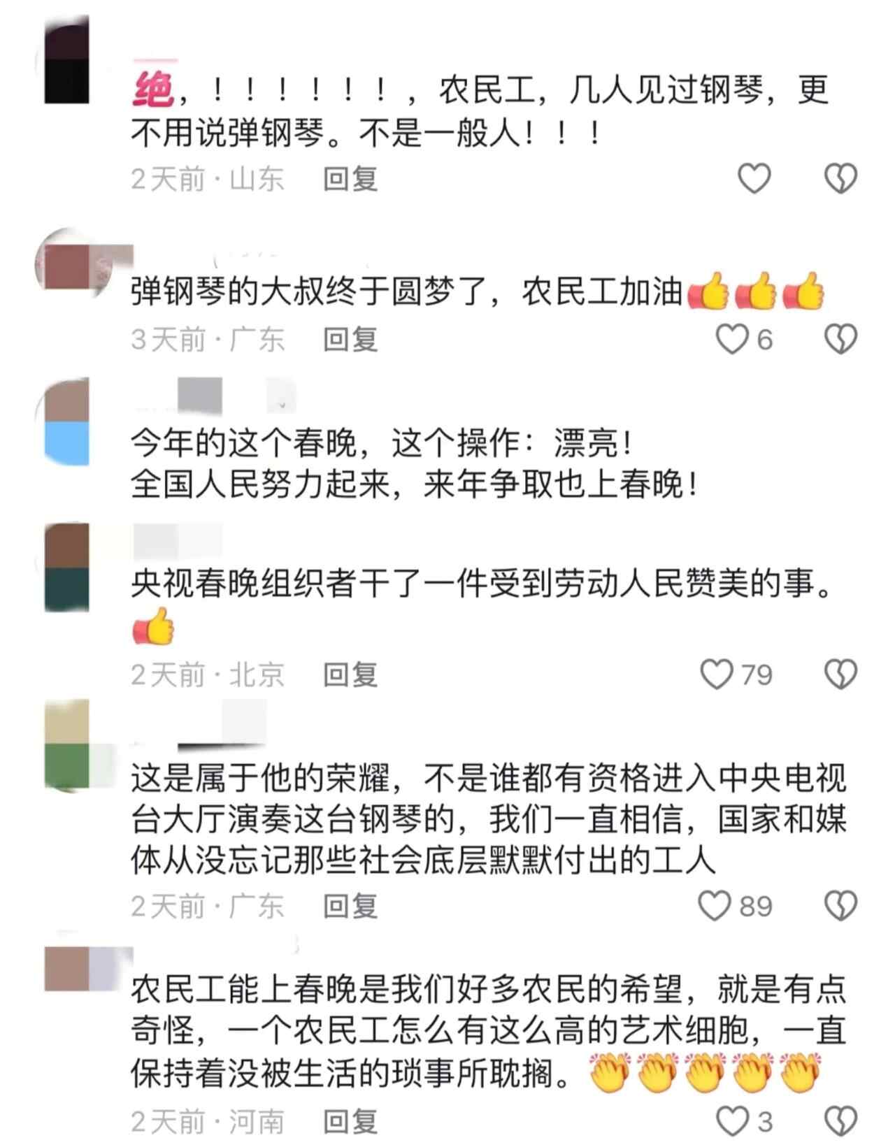 不少同是工人的网友留言,字里行间都是兴奋与喜悦,“老易是我们建筑工人的代表,春晚邀请他,我们替他骄傲,也为自己自豪!”