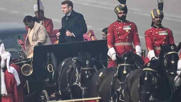 马克龙乘马车抵现场观摩印度国庆阅兵式