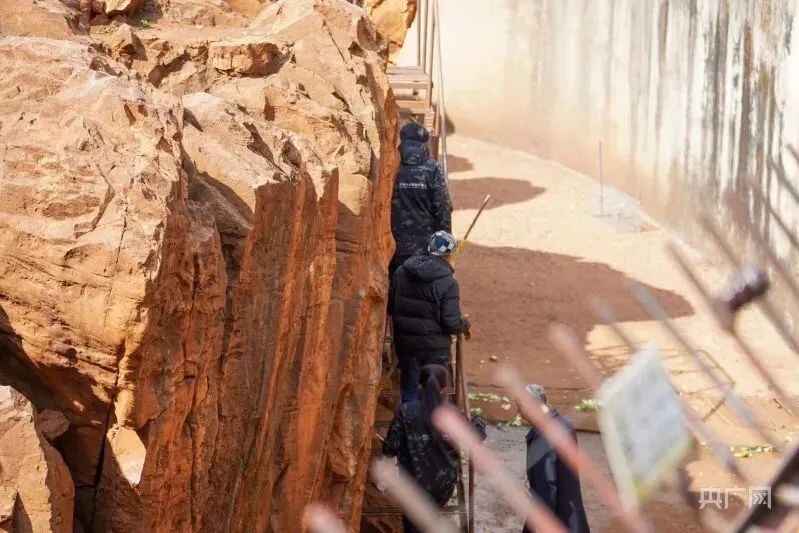 工作人员进入猴山。图/央广网