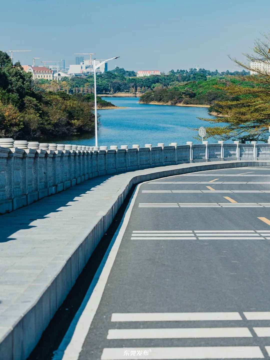 环湖绿道曲径通幽,树影婆娑,峰峦绿树倒影湖中,波光烟雨青翠流荡……松山湖生态景区环湖建成了30多公里的曲折蜿蜒的亲水湖岸线,沿线景点美不胜收。