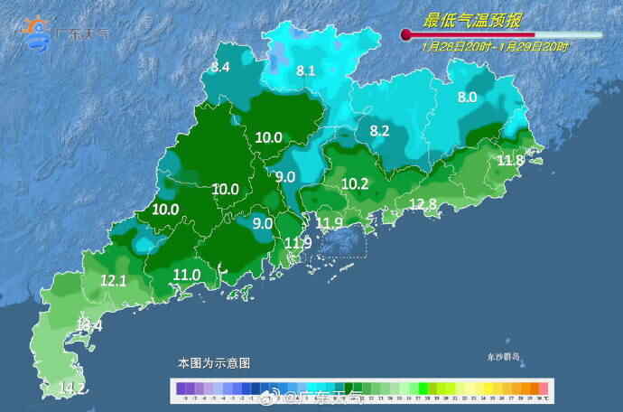 29日,西部市县阴天有小雨,其余市县多云天气为主。最低气温:粤北市县7℃~10℃,南部市县12℃~15℃,其余市县10℃~12℃。