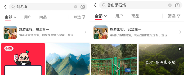 据了解,小红书已针对社区用户进行安全出游提醒,提醒大家远离濒水、岩洞、铁轨、崖边、河道等无安全保障的危险区域,不前往没有正式开发开放、缺乏安全保障的区域旅游。同时,对文旅部门明确提示存在安全隐患的野生景点和风险目的地,进行贴条文案提示。