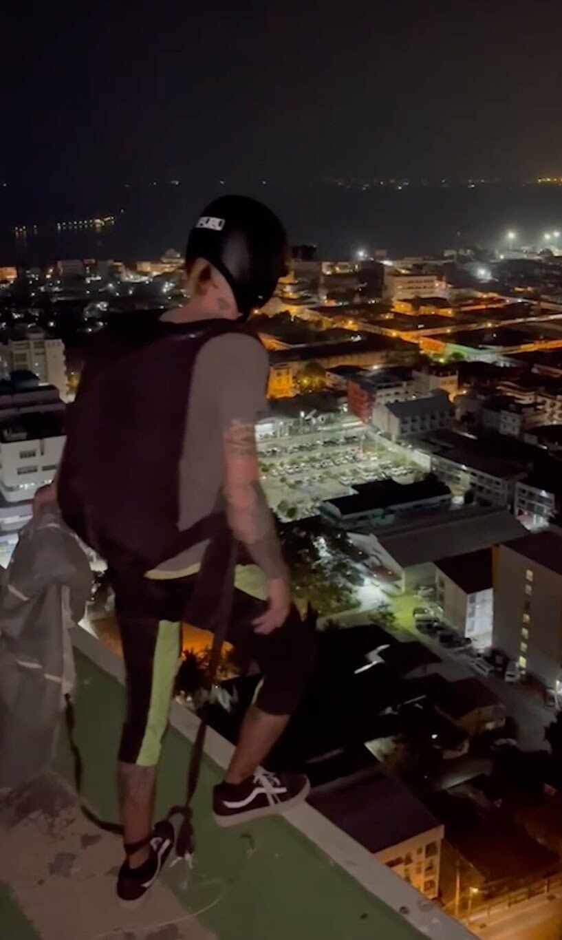 据《每日邮报》援引《每日镜报》的报道称,奥丁森今年33岁,他于上周六晚上非法爬上了泰国芭堤雅海滨度假胜地一座建筑物的29层。奥丁森一位随行的朋友拍摄了他跳伞前的情形,当时他微笑着检查和调整他的设备,视频中,他发现随身携带的摄像头没有开启记录,随即摘下头盔按下拍摄按钮。然后,奥丁森检查他的降落伞,说:“三,二,一,再见!”随后就跳下去了。