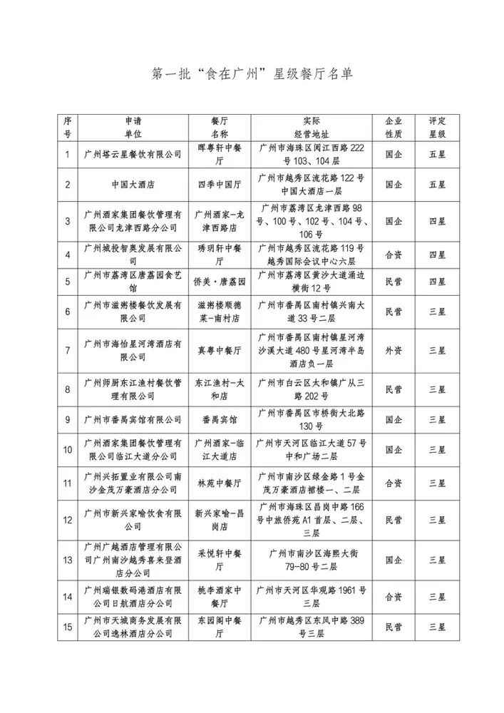 羊城晚报记者从现场获悉,广州塔云星餐饮有限公司旗下的晖粤轩中餐厅、中国大酒店的四季中国厅等15家餐厅脱颖而出,授权成为第一批“食在广州”评价认证的星级餐厅;广州酒家集团利口福食品有限公司等3家食品生产企业的相关产品,成为第一批“食在广州”品牌产品。
