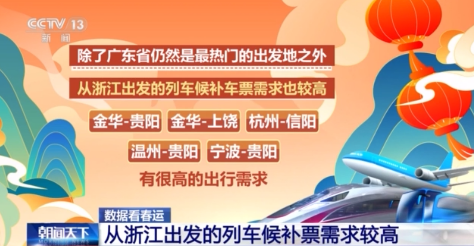 火车候补票数据揭示了春运期间人们出行需求的热点和趋势。除了广东省仍然是最热门的出发地之外,从浙江出发的列车候补车票需求也较高,从金华到贵阳、金华到上饶、杭州到信阳、温州到贵阳以及宁波到贵阳的这些路线,有很高的出行需求。这也从侧面反映出广大务工人员和他们的家庭在春运期间返乡的迫切心情。