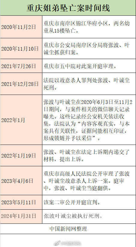 2024年1月31日上午,重庆市第五中级人民法院遵照最高人民法院下达的执行死刑命令,对张波、叶诚尘执行了死刑。