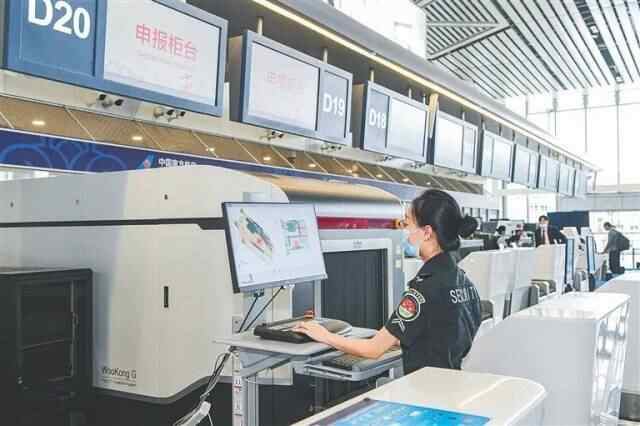 海口美兰国际机场封关运作项目现场,工作人员在智能查验通道进行运行测试。袁琛 摄