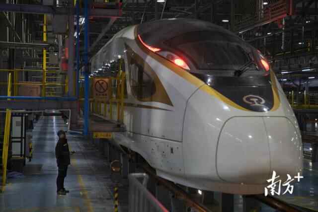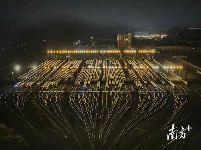 1月24日凌晨三点,广州动车段广州南动车运用所停满了已检修完成的列车,它们正等待着发车任务的号角,投入春运。