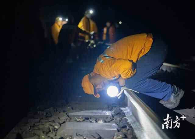 “光”是春运背后的坚守。为了保证运行秩序,动车检修通常在晚上进行,留给每辆车的时间只有短短四个小时,在这四个小时里,机械师爬上车顶,踩着像马路盲道一样的“防滑条道”来回,一晚的步数可以超过2万步。大瑶山漆黑的隧道里,线路工人巡查钢轨状态、清理线路病害,头灯是唯一的光亮,却照亮了万米长的铁轨。广茂线西江特大桥上,桥梁工钻“桥肚”、下桥底,“飞檐走壁”为大桥做好“体检”。